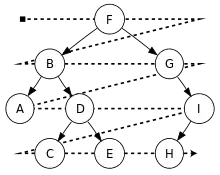 - обратный (post-order)[1]. Кроме этих трёх основных схем, возможны более сложные гибридные схемы, такие как алгоритмы поиска с ограниченной глубиной, подобные поиску в глубину с итеративным углублением.