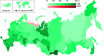 | 866[lower-alpha 14] (Москва) | 72,2 % | 41 % | 26 % | 5 % | 15 % | ||