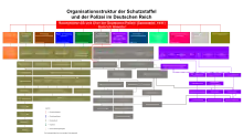 Структура, количество подразделений в СС и их названия на протяжении всех лет существования постоянно изменялись. С 1933 по 1936 год СС состояла из организаций: