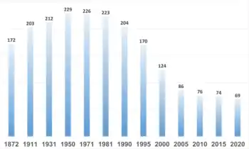 После получения независимости от Дании число общин в Исландии выросло, достигнув своего пика в 1950 году — 229 общин, затем их количество стало постепенно сокращаться, упав до 69 в 2020 году. Этот процесс уменьшения количества общин и, одновременно их укрупнения, обусловлен с одной стороны падением их числа их населения из-за постоянного оттоком жителей в столичный регион, а с другой стороны, тем, что крупные общины удобнее для передачи им большего количества функций и полномочий от государства[6][7]. Роль местного самоуправления стала более сложной, поскольку в ведение общин 1 августа 1996 года государством были переданы все местные школы, а 1 января 2011 года общины получили под своё управление управление социальные службы, в том числе оказание услуг для людей с ограниченными возможностями.[2]