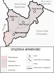 | Арачиново мак. Арачиново алб. Komuna e Haraçinës | ![]() | ![]() | 31,3 | 11 597 | 42°02′24″ с. ш. 21°34′12″ в. д. | албанцы — 93,8 % македонцы — 5,1 % | ![]() | ![]() | [2] |