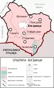 | Богданци мак. Богданци алб. Komuna e Bogdancës | ![]() | ![]() | 114,54 | 8707 | 41°13′48″ с. ш. 22°33′36″ в. д. | македонцы 92,94 % сербы — 6,02 % | ![]() | ![]() | [6] |