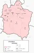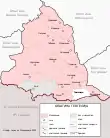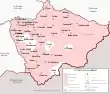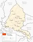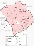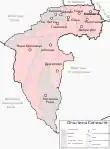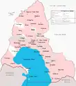 | Название | Изображение | Герб | Пл. (км²) | Нас. (2002)[1] | Координаты | Этн. состав | Карта | Карта | Прим. |