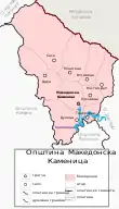 | Македонска-Каменица мак. Македонска Каменица алб. Komuna e Kamenicës | ![]() | ![]() | 190,37 | 8110 | 42°00′36″ с. ш. 22°34′48″ в. д. | македонцы — 99,32 % | ![]() | ![]() | [50] |
