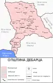 | Дебарца мак. Дебрца алб. Komuna e Debërcës | ![]() | ![]() | 425,39 | 5507 | 41°18′00″ с. ш. 20°49′48″ в. д. | македонцы — 96,68 % албанцы — 2,78 % | ![]() | ![]() | [23] |