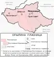 | Пласница мак. Пласница алб. Komuna e Pllasnicës | ![]() | ![]() | 54,44 | 4545 | 41°28′01″ с. ш. 21°07′08″ в. д. | турки — 97,82 % | ![]() | ![]() | [58] |