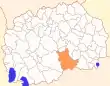 | Струмица мак. Струмица алб. Komuna e Strumicës | ![]() | ![]() | 321,49 | 54 676 | 41°25′48″ с. ш. 22°39′36″ в. д. | македонцы — 91,92 % турки — 8,86 % | ![]() | ![]() | [70] |