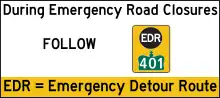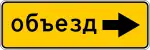 Существуют также информационные дорожные знаки, подсказывающие водителю маршрут объезда временно закрытого участка дороги. На протяжении такого объезда на всех перекрёстках должны быть установлены знаки, указывающие направление объезда[5].