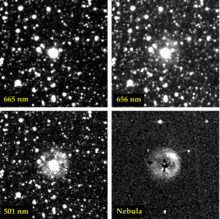 Результаты первых инфракрасных наблюдений были опубликованы в 1998 году, были представлены данные спектроскопии в ближнем и дальнем инфракрасном диапазоне. Полученные данные показали резкое увеличение яркости в 1996 году, затем в 1999 году произошло резкое уменьшение яркости, как и ожидалось. Затем было обнаружено, что уменьшение яркости связано с наличием пыли около звезды; температура пыли оценивается в ~680 K.[14][15] Дальнейшие наблюдения в инфракрасном диапазоне, проведённые на телескопе UKIRT, были опубликованы в 2000 году; в работе обсуждается изменение линий поглощения.[16][17]