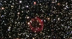 Объект Сакураи окружён планетарной туманностью, возникшей после стадии красного гиганта около 8300 лет назад.[26] Угловой диаметр туманности составляет 44 угловые секунды, скорость расширения равна приблизительно 32 км/с.[27]
