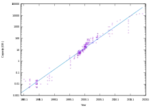 | 1 ЙБ | Теоретический предел NTFS при 64-КБ блоках и 64-битной адресации (в настоящий момент используется 32-битная).[7] |