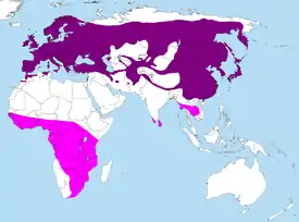 Подвид C. c. bangsi гнездится на Пиренейском полуострове, Балеарских островах и в исторической области Магриб на северо-востоке Африки (сюда входят прилегающие к Средиземному морю районы Марокко, Алжира и Туниса). Подвид C. c. subtelephonus распространён в южном Казахстане, Средней Азии, Монголии, Иране, Афганистане, пакистанском Белуджистане и китайском Синьцзяне. Подвид C. c. bakeri населяет западный и южный Китай (включая юго-восточную оконечность Тибета), подножия Гималаев на северо-востоке Индии, индийский штат Ассам, Непал, Мьянму, Лаос, северный Таиланд и северный Вьетнам[22].