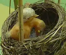 Некоторые виды, в гнездах которых паразитирует обыкновенная кукушка, способны выявлять и избавляться (дискриминировать) от яиц кукушки, но никогда от птенцов[68]. Эксперименты показали, что птенец кукушки побуждает своих приёмных родителей кормить его, издавая быстрый «птенцовый позыв» (крик выпрашивания корма), который звучит «удивительно сходно с целым выводком птенцов вида-хозяина». Исследователи предположили, что «кукушке необходимо использовать этот вокальный приём, чтобы стимулировать надлежащую заботу хозяев гнезда, компенсируя то, что птенец может предъявить лишь один визуальный стимул, свой открытый просящий зев»[66]. Однако птенец кукушки нуждается в количестве пищи, предназначавшейся для целого выводка птенцов вида-хозяина, и он борется за то, чтобы побудить приемных родителей кормить его с такой интенсивностью только при помощи вокальной стимуляции. Приемные родители кормят птенца кукушки дольше, чем собственных птенцов, как до вылета последнего из гнезда, так и после вылета[66].
