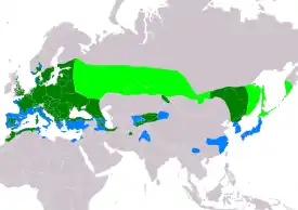 ![]() Только гнездится Круглогодично Районы миграции |
