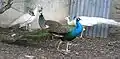 Пара белых и пара дикоокрашенных павлинов
