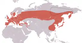 Широко распространён в лесной зоне Палеарктики (Европа, большая часть Азии и Северная Африка) от атлантического побережья на западе до тихоокеанского на востоке. В странах Европы встречается почти повсеместно, однако отсутствует на юге Испании, северной части Шотландии, в Ирландии, на севере Скандинавии и южной части Украины. На территории Российской Федерации ареал с севера ограничен побережьем Белого моря, селом Усть-Цильма на Печоре и низовьями Оби; с юга Воронежской, Саратовской областями, Южным Уралом, Кокшетау, Омском и Барнаулом[8]. За пределами России, в Азии на Дальнем Востоке обитает в Китае, Корее, Японских островах и Тайване; на юг доходит до Израиля, Ирана, Гималайских гор и Индокитая[4]. В Африке встречаются в небольшом районе Атласских гор в Марокко.