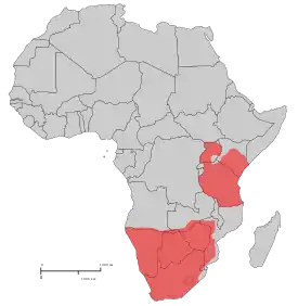 Вид представлен двумя изолированными популяциями, из которых одна находится в Восточной Африке, а вторая в Южной Африке. Вероятно, в плейстоцене ареал был сплошным. Наибольшая плотность животных в засушливых регионах, таких как Карру и Калахари. Естественная среда обитания — это травянистые и кустарниковые ландшафты. Как правило, в лесах, а также в гористых и скалистых областях животные не встречаются.