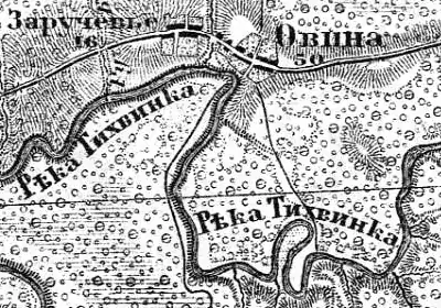 Деревня Овино на карте 1913 г.