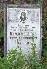 Пётр Андреевич Овчинников (1893—1968) — советский административно-хозяйственный и партийный деятель, депутат городского Совета города Тулы. Член РСДРП(б)/ВКП(б)/КПСС.