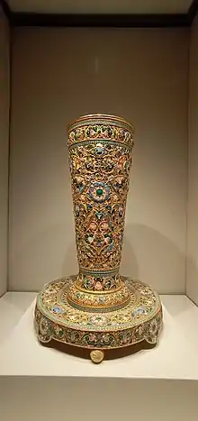 - Серебряная ваза «Сказка в металле». Серебро, чеканка, полихромная эмаль, сапфиры, турмалины, гранаты, сердолики и аметисты[10].