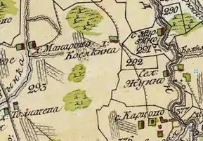 В 1726-ом году в Вепрейской волости Боровского уезда на реке Медынка были отысканы погост Пречистенский с кладбищем и пустошь Черниченка. В понятых были крестьяне деревни Устья, священники церкви Покрова села Жуино и села Маковец, принадлежащего Михаилу Михайловичу Голицыну[11].