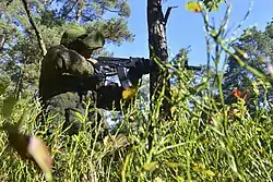7,62-мм автомат Калашникова[11] (АК, индекс ГРАУ — 56-А-212, часто неверно[12] называют АК-47) — автомат, разработанный Михаилом Калашниковым с 1946 по 1947 год, принятый на вооружение Советской Армии в 1949 году.