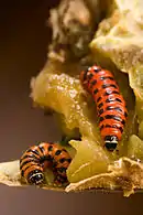 Гусеницы первых возрастов розово-кремового цвета, с возрастом их окраска становится оранжевой с чёрными пятнами или полосами.