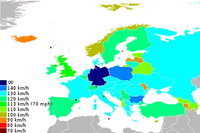 На некоторых дорогах до сих пор не существует ограничений скорости. Самые известные — немецкие автобаны. Есть даже организованные путёвки с главной целью кататься на машине с неограниченной скоростью по автобану. Введение генерального ограничения скорости на автобанах обсуждается со времён основания ФРГ в 1949 году.