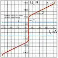 Вольт-амперная характеристика ограничителя состоит из 3 участков: