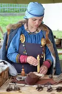 Викинги особо ценили шелк и золотое шитье. Дорогие заморские ткани упоминаются в Саге об Эгиле в качестве подарка на праздник; один из героев получает в дар одеяние из шелка и «пестрой английской ткани»: