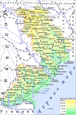 Большая часть территории Одесской области относится к Причерноморской низменности, постепенно понижающейся к Чёрному морю.