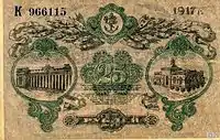 - 25 и 50 рублей (последняя появилась в августе 1918) — в типографии Моисея Шпенцера, отца поэтессы Веры Инбер, в Стурдзовском переулке (ныне переулке Веры Инбер), где сейчас типографский цех Одесской книжной фабрики).