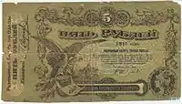 - Купюры 3, 5, 10 рублей печатались в типографии Южно-русского общества печатного дела.