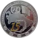 | Аверс: позолоченный герб Туркмении, название банка-эмитента, руб-аль-хизб, номинал монеты, масса и проба металла. Реверс: эмблема ООН, флаг Туркмении, оливковая ветвь и позолоченное число «15» на фоне карты Туркмении с отмеченной на ней столицей, надпись на туркм. TÜRKMENISTANYŇ HEMIŞELIK BITARAPLYGYNA, пять туркменских гёлей. Гурт рубчатый. Номинал: 1 манат. Масса: 28,28 г. Диаметр: 38,61 мм. Тираж: 250 шт.[7] | ||