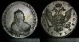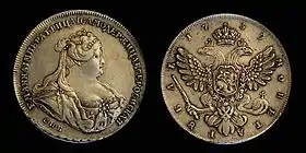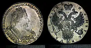 Чеканка рублевых монет возобновилась в 1704 году при Петре I и уже не прекращалась (за исключением коротких периодов) до наших дней. Первоначально это были серебряные монеты весом 28 граммов при содержании чистого серебра около 25—26 граммов. К 1764 году это содержание снизилось до 18 граммов и в собственно серебряных рублёвиках периода Российской империи уже не менялось[5]. Кроме того, в царствование Екатерины I в обращении непродолжительное время находились полноценные медные рублёвые монеты квадратной формы, отчеканенные по образцу шведских плат[6].