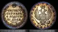 «Александровский» рубль Российской империи серебро 1861 (лицевая сторона)