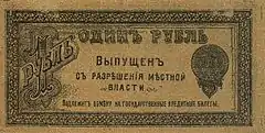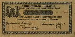 112×65 | коричневый | Номинал цифрами и прописью, пояснительные надписи | Герб России, номинал цифрами и прописью | Есть | 1918 |