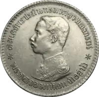 В 1915 году были отчеканены монеты из серебра 800-й пробы с портретом Рамы VI[7]. В 1917—1925 годах чеканились монеты из серебра 650-й пробы аналогичного дизайна[8], а в 1919 году были отчеканены монеты из серебра 500-й пробы[9]. Все более поздние выпуски эквивалентных по стоимости монет имели номинал, выраженный в сатангах — 25 сатангов.
