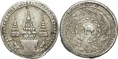 В 1860 году, параллельно с монетами-слитками, также чеканились монеты европейского типа из серебра[2]. В 1869 году были отчеканены монеты чуть отличного дизайна, также из серебра[3]. В 1876—1900 годах чеканились серебряные монеты абсолютно другого дизайна с изображением Рамы V[4]. В 1901—1908 годах чеканились серебряные монеты аналогичного дизайна, но меньшей массы и с указанием года[5].