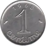 В январе 1960 года была проведена денежная реформа, введён «новый франк», равный 100 старым. Сантимы вновь вернулись в обращение. Первоначально в качестве монеты в 1 сантим использовались старые монеты в 1 франк. В 1959—1961 годах чеканились только пробные образцы новых монет. Новый тип монет («Колос») разработал Раймон Жоли. Регулярная чеканка и выпуск в обращение новых сантимов были начаты в 1962 году.