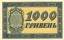 1000 гривен — номинал денежных купюр, которые были эмитированы на Украине 25 октября 2019 года, а также номинал купюр УНР, которые находились в обращении в 1918—1920 годах.