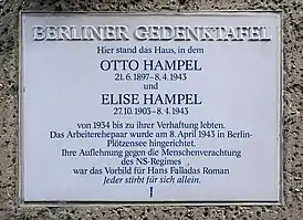 «Одни в Берлине» (англ. Alone in Berlin) — исторически-драматический фильм 2016 года совместного производства Германии, Великобритании и Франции, снятый швейцарским режиссёром Венсаном Пересом по роману «Каждый умирает в одиночку» Ганса Фаллады, вышедшем в 1947 году. Мировая премьера ленты состоялась в феврале 2016 года на Берлинском международном кинофестивале[5].