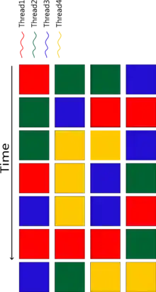 Архитектуры с аппаратной многопоточностью выполняют несколько потоков с возможностью быстрого переключения контекста между ними. Такая «традиционная» многопоточность скрывает задержки памяти и функциональных модулей (снижая количество «пустых» циклов), хотя в каждом конкретном цикле исполняются инструкции из одного потока. Однако увеличение количества одновременно исполняемых инструкций снижает возможности традиционной многопоточности.