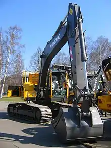 Одноковшóвый экскавáтор — разновидность экскаватора, землеройная машина циклического действия для разработки (копания), перемещения и погрузки грунта. Рабочим органом является подвижный ковш разного кубического объёма, закреплённый на стреле, рукояти или канатах. Ковш загружается за счёт перемещения относительно разрабатываемого грунта. При этом корпус экскаватора относительно грунта остаётся неподвижным — тяговое усилие создаётся механизмами экскаватора. Это отличает экскаватор от скрепера и фронтального погрузчика , где тяговое усилие при загрузке ковша создаётся перемещением корпуса машины.