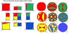 t0{∞,8}![]() ∞8 | h0{∞,8} (8.∞)8 | t01{∞,8}![]() ∞.8.∞ | h01{∞,8} 3.∞.3.4.3.∞ | t1{∞,8}![]() (8.∞)2 | h1{∞,8} (4.4.4.∞)2 | t12{∞,8}![]() 16.∞.16 | h12{∞,8} 3.8.3.∞.3.8 | t2{∞,8}![]() 8∞ | h2{∞,8} (∞.4)∞ | t02{∞,8}![]() 8.4.∞.4 | h02{∞,8} 4.4.4.4.∞.4 | t012{∞,8}![]() 4.16.∞ | s{∞,8} 3.3.8.3.∞ | |||||