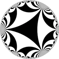 Некоторые семейства однородных мозаик показаны ниже (с использованием модели Пуанкаре для гиперболической плоскости). Три из них – (7 3 2), (5 4 2) и (4 3 3) – и никакие другие, минимальны в том смысле, что если любое из определяющих чисел заменить на меньшее целое значение, получим либо евклидову, либо сферическую мозаику, а не гиперболическую. И обратно, любое из чисел можно увеличить (даже заменив на бесконечность), чтобы получить другой гиперболический узор.