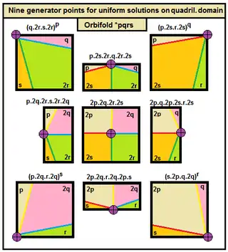 Существует бесконечно много семейств групп треугольника (p q 2). В статье показаны правильные мозаики вплоть до p, q = 8 и однородные мозаики 12 семейств: (7 3 2), (8 3 2), (5 4 2), (6 4 2), (7 4 2), (8 4 2), (5 5 2), (6 5 2) (6 6 2), (7 7 2), (8 6 2) и (8 8 2).