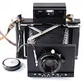 Листовые комплекты («планфильм») 50-й серии с размером кадра 4×5 дюймов появились в 1958 году и так же состояли из двух листов негативной плёнки и приёмной бумаги с капсулами реактивов, упакованными в бумажный конверт[25]. Каждый конверт заряжался в фотоаппарат или специальную кассету Polaroid, оснащённую валиками для запуска процесса проявления. В 1963 году Polaroid выпустил фильмпак 100-й серии[* 2], состоящий из восьми листов 3,25×4,25 дюйма, которые экспонировались из одной кассеты, а в 1973 стали доступны листовые комплекты 800-й серии большого формата 8×10 дюймов[26][25]. Чёрно-белый «тип-612» сотой серии обладал одним из самых высоких значений светочувствительности 20 000 ASA[24]. Позднее был начат выпуск фильмпака 550-й серии формата 4×5 дюймов и 80-й с почти квадратным кадром 8,3×8,6 сантиметров. Адаптеры для комплектов 800-й серии, в отличие от остальных задников для листовых материалов Polaroid, не оснащались валиками для проявки, которая происходит в отдельном процессоре.