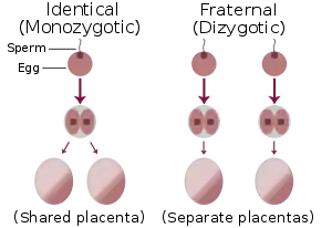Обычно определение варианта близнецов (однояйцевые или многояйцевые) не представляет трудностей. После родов в родзале на специальном блюде раскладывается и исследуется плацента (послед), которая выходит из половых путей женщины в течение часа (5-60 минут) следом после рождения близнецов. Трудности возникают, когда рождаются однополые многояйцевые близнецы с тесно примыкающими друг к другу плацентами, которые сливаются в единое целое и имеют общую капсулярную оболочку. Тем не менее, ворсинчатая и водная оболочки каждого из плодных яиц остаются раздельными[3]. Таким образом, основное отличие: однояйцевые близнецы формируются из одного сперматозоида и одной яйцеклетки, а многояйцевые — из двух (и более) разных сперматозоидов и яйцеклеток.