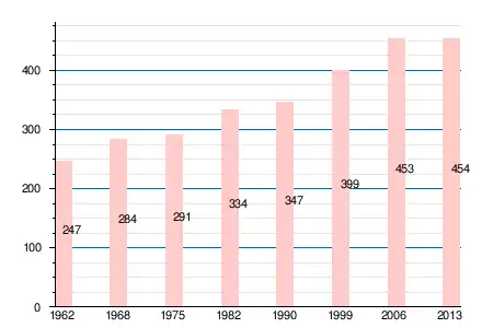 | 1962 | 1968 | 1975 | 1982 | 1990 | 1999 | 2006 | 2008 | 2011 | 2012 | 2013 |